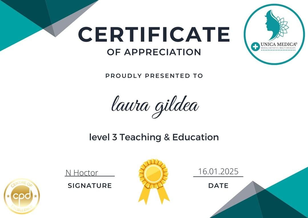 Laura is a CPD Registered aesthetician, and has all the necessary teaching qualifications required.