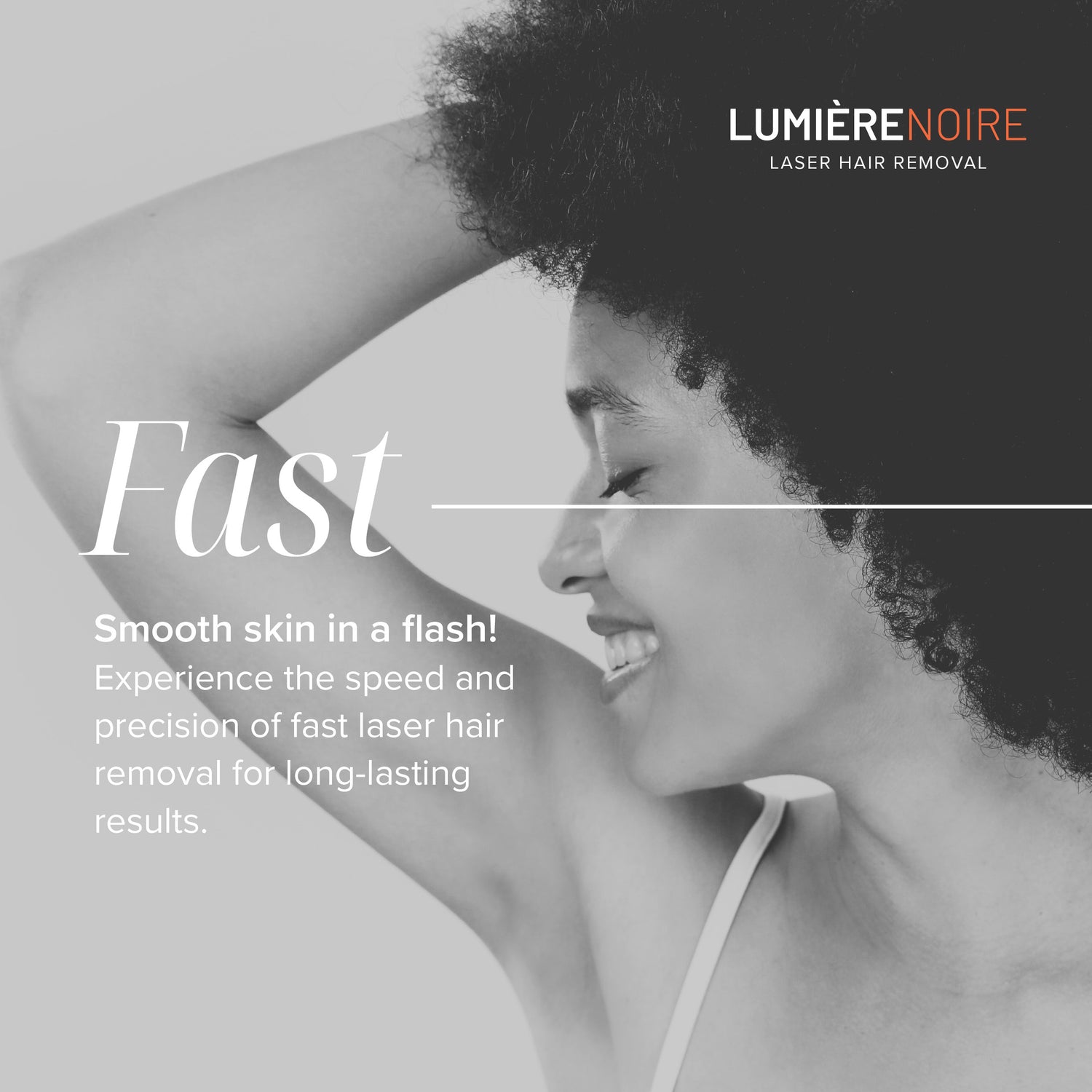 Achieve smooth skin in no time with the assistance of the Lumière Noire. Experience the speed and precision of fast faster hair removal for long-lasting results that you can be proud of.